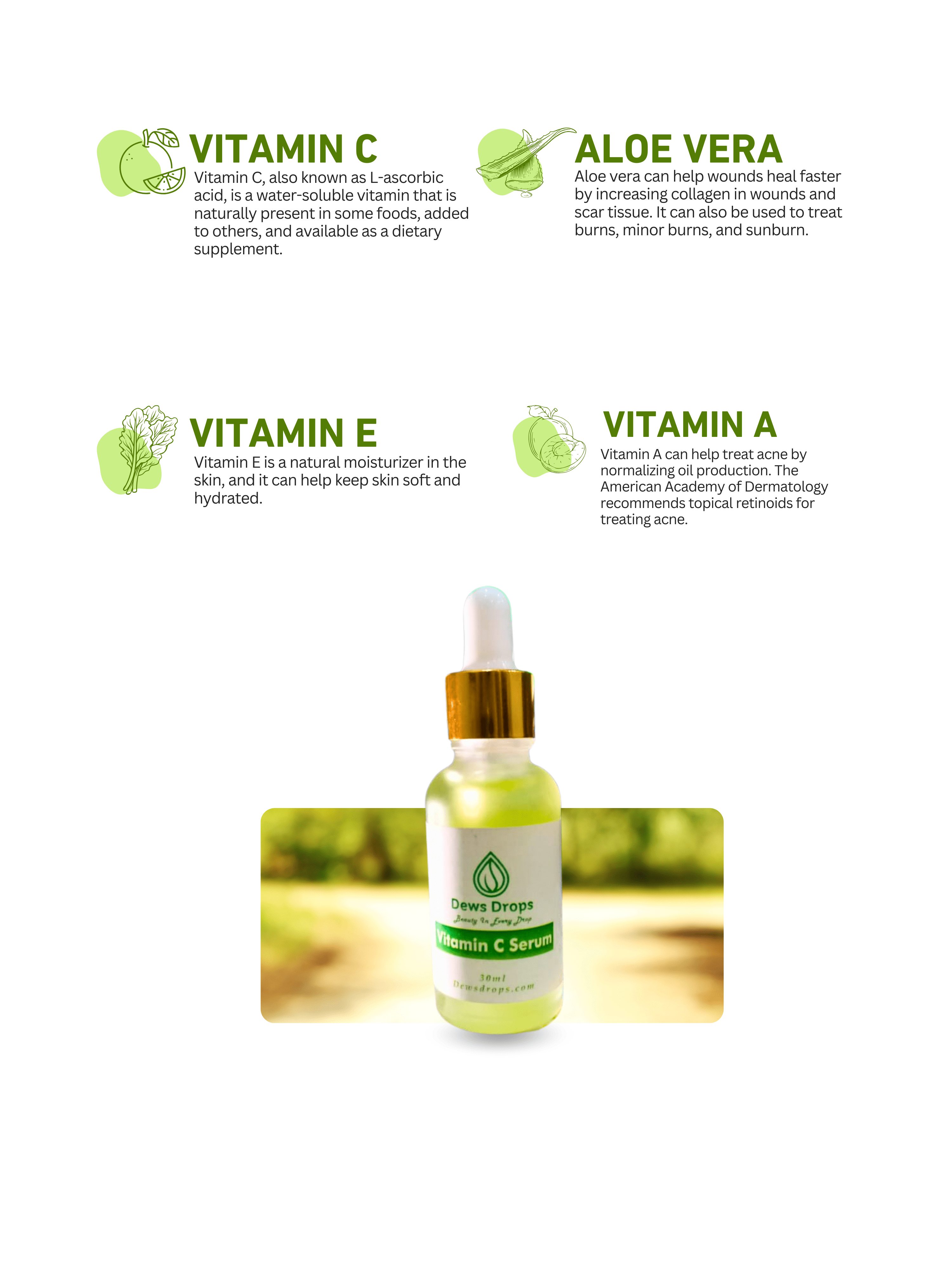 Specially formulated with the most effective skin whitening and lightening agents available on the market today, dews drops Ultra Vitamin Serum only uses the safest ingredients from the most reliable sources to offer the results you expect without the risks of harsh chemicals such as Hydroquinone, Azelaic Acid. When applied twice a day to the target areas, this treatment will encourage a smooth and uniform skin tone and a lighter complexion over time.